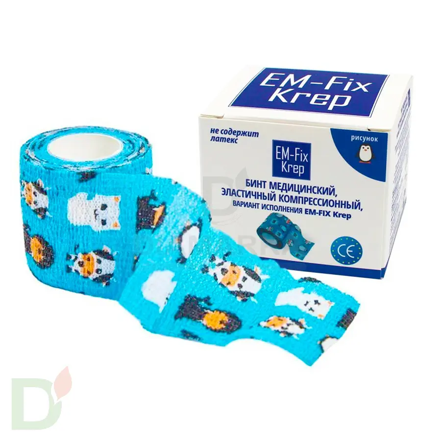 Бинт эластичный когезивный EM-fix krep ДЕТСКИЙ, 5 см х 4,5 м