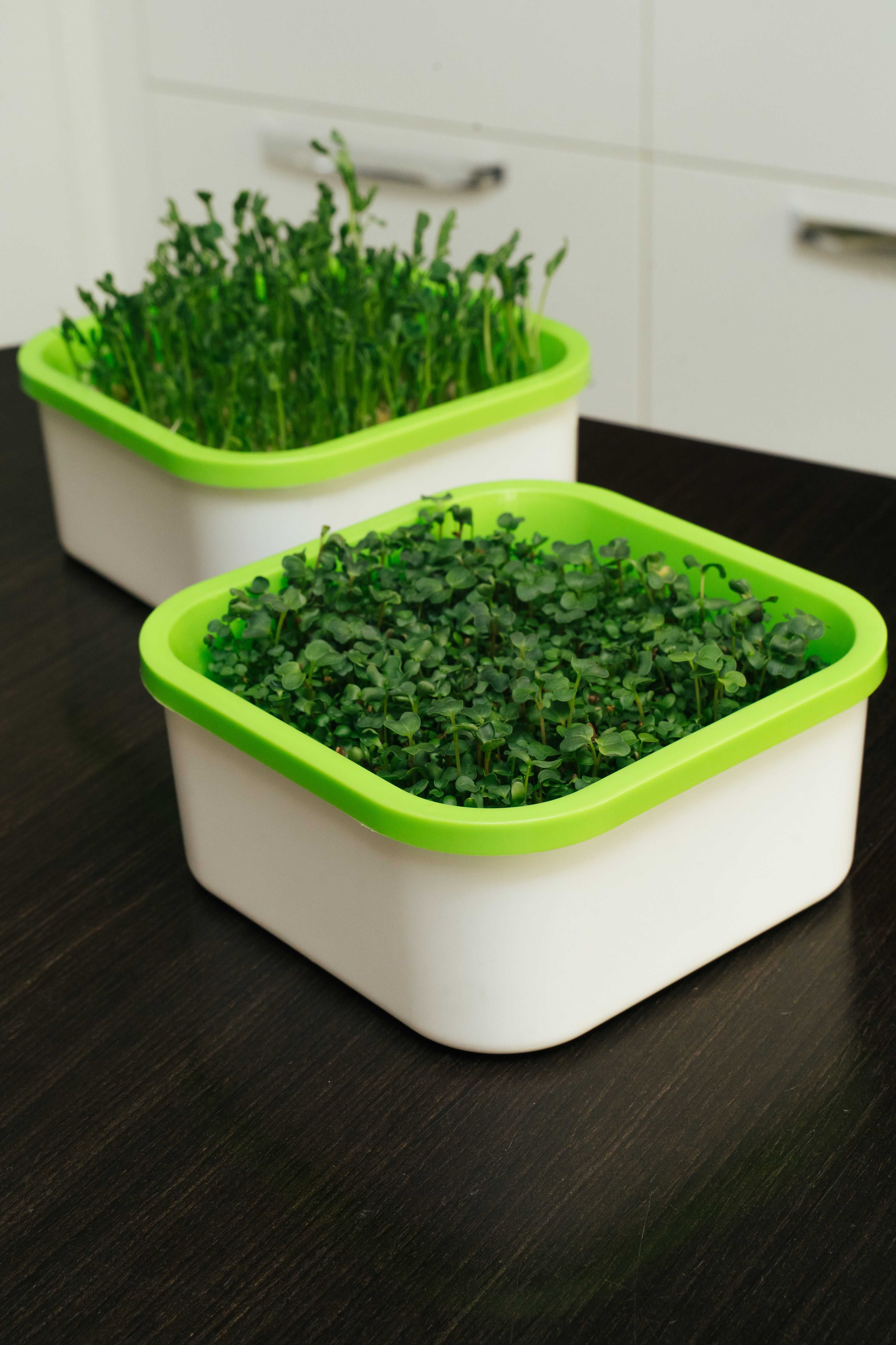 Каждый набор состоит из мини-контейнера с крышкой и подложкой для семян + пакетик с семенами. Это подходящий вариант для тех, кто только планирует заняться проращиванием.