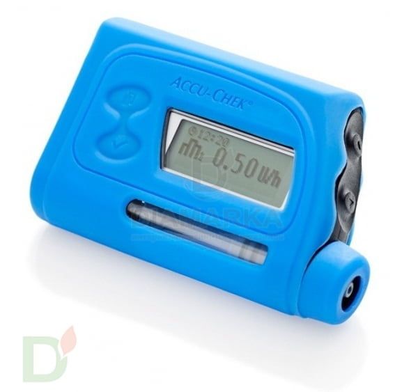 Яркий силиконовый чехол защитит вашу помпу от ударов и царапин. Имеется окошко для экрана и картриджа, чтобы вы знали, сколько осталось инсулина.