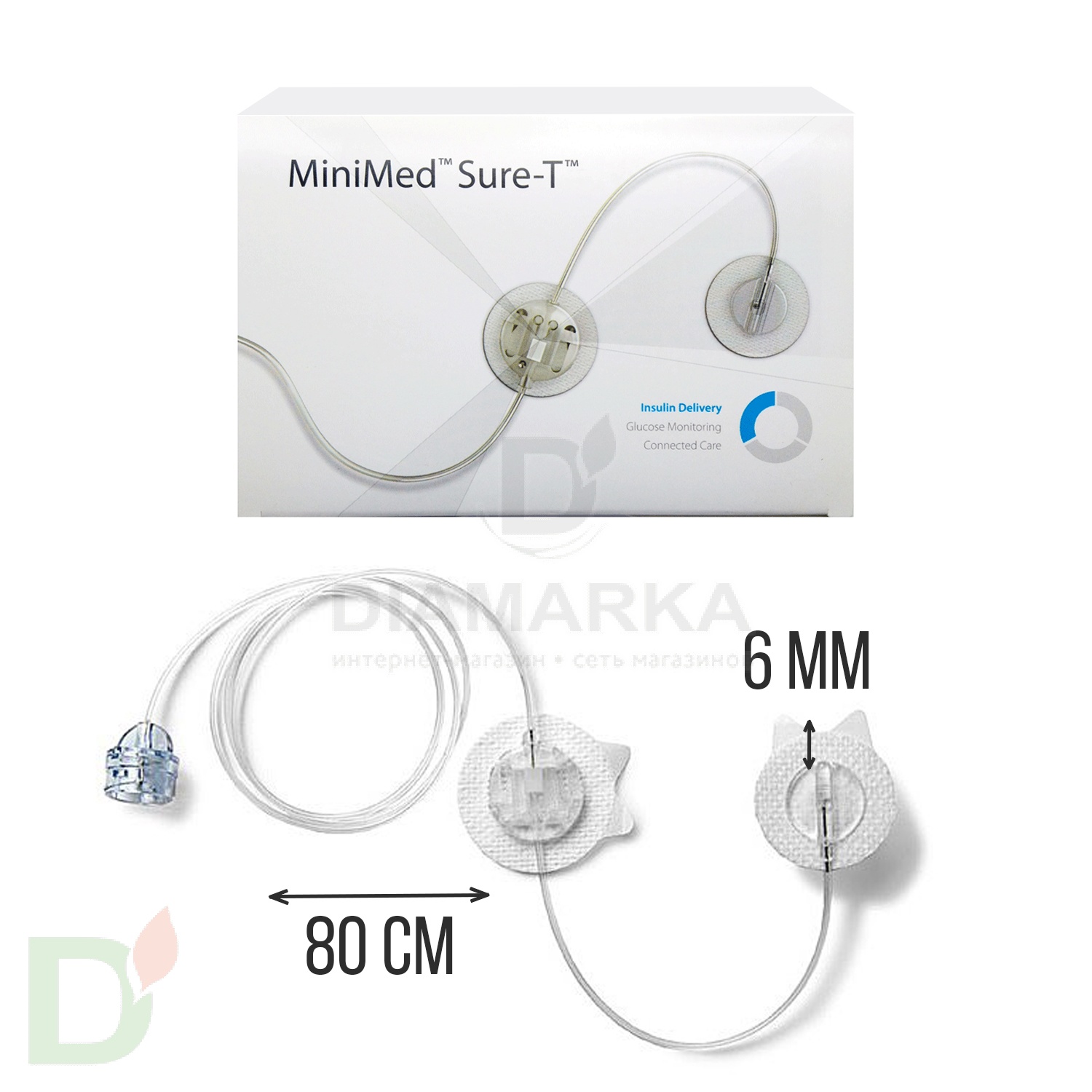 Устройство для инфузии Шуа-Ти 6/80 представляет собой набор из стальной канюли и двух тонких трубочек, которые соединяются с инсулиновой помпой компании Медтроник. Длина иглы в системе ММТ-862 составляет 6 мм, длина трубочки – 80 см. Отличительной особенностью данной системы является самый маленький из имеющихся на рынке диаметр иглы 29-G. Такая игла очень комфортна в ношении и почти незаметна на теле. Канюля вводится в тело вручную и крепится с помощью специально предусмотренной липкой ленты. При необходимости трубочку можно отсоединить, а иглу заклеить специальным пластырем. Коннектор трубок на расстоянии 10 см допускает разъединение без прикосновения к месту инфузии. Замену канюли нужно производить не реже чем раз в 3 дня.<br> <br> Комплектация:<br> 1 индивидуальная упаковка состоит из канюли 6 мм, трубочки 80 см. <br> <br> <div> Производитель: Medtronic – США </div> <div> <br> </div> <div> <b>*Стоимость указана за 1 шт. (на 3 дня)</b> <br> </div> <h3>Инфузионные системы, резервуары, сенсоры, инъекционные порты - одноразовое стерильное медицинское изделие, гарантия на них не предусмотрена. Срок годности инфузионных наборов для помпы MiniMed - 3 года с даты производства. Срок службы - 2-3 дня.</h3>