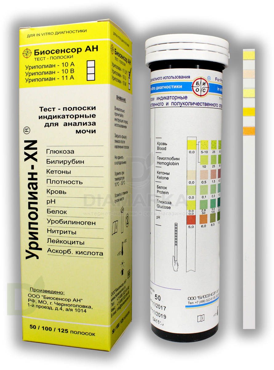 Тест-полоски визуальные Уриполиан-XN 11A № 50 для определения биохимических параметров в моче